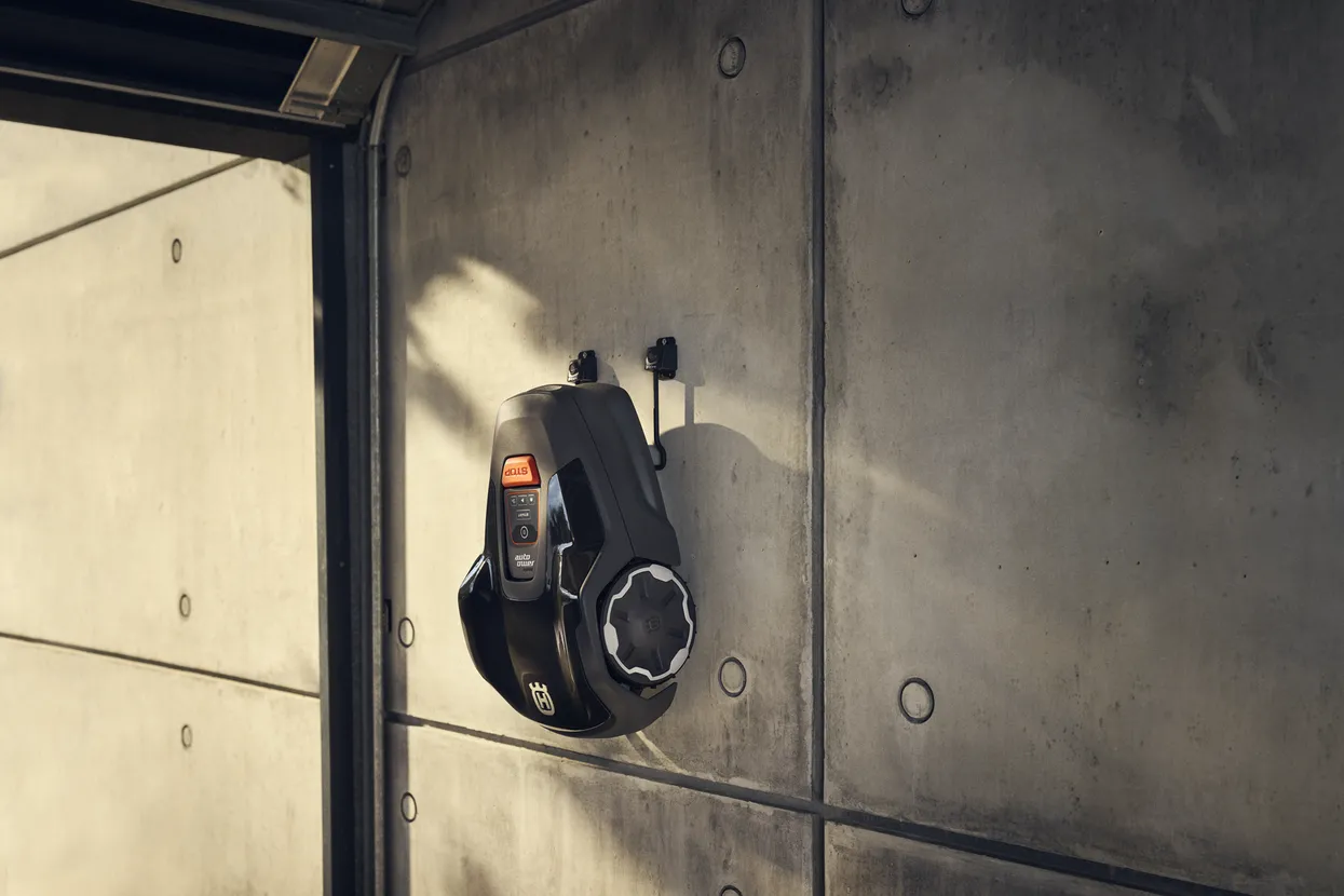 Robot tondeuse compact, optimisé pour la tonte de petites pelouses et de passages étroits.